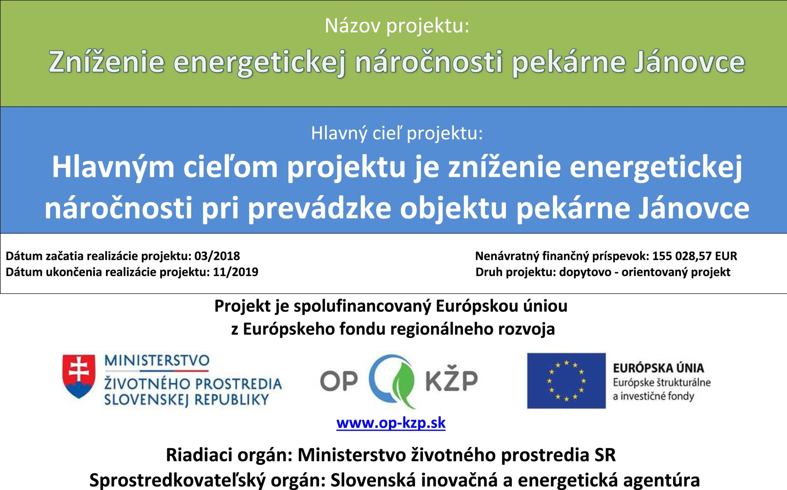 Agrax spol. s r.o. získala dotáciu v rámci neávratného finančného príspevku z Operačného Programu kvalita Životného Prostredia na projekt s názvom: Zníženie energetickej náročnosti pekárne Jánovce.Tento projekt je podporený z Operačného Programu kvalita Životného Prostredia. Zmluva medzi poskytovateľom – Ministerstvo Životného Prostredia SR v zastúpení Slovenskou inovačnou a energetickou agentúrou a prijímateľom – Obcou Nový Život nadobudla účinnosť dňa 12.12. 2018. Projekt je orientovaný na rekonštrukciu budovy pekárne spoločnosti Agrax v obci Jánovce smerom k zníženiu jeho energetickej náročnosti počas jej prevádzky a realizácia projektu, resp. jej stavebno-technická a technologická časť prebiehala v roku 2019 do 11.11. 2019. Výška oprávnených výdavkov projektu je 182 386,55 € a finančná spoluúčasť v rámci finančných zdrojov spoločnosti Agrax na tejto sume je 27 357,98 €. Výsledky realizácie projektu budú slúžiť pre potreby spoločnosti Agrax spol. s.r.o. dlhšie obdobie, pretože technické riešenie projektu uvažuje o využití kvalitných a trvácnych materiálov a technológií. Realizácia projektu prinesie úsporu finančných prostriedkov, pretože klesne ekonomická náročnosť prevádzky objektu. Prevádzková udržateľnosť projektu bude zabezpečená modernizáciou objektu, zlepšením tepelno–technických vlastností stavebných konštrukcií predmetnej budovy a celkovým znížením spotreby a úsporou energií na vykurovanie, ohrev teplej vody a svetlo. Prevádzka obnovenej budovy bude neporovnateľne úspornejšia v porovnaní so stavom pred realizáciou projektu, čo je dobrým predpokladom jej dlhodobého využívania. Realizáciou navrhovaných opatrení stavebných úprav objektu a úprav na technológií dôjde k zníženiu spotreby paliva, z čoho vyplýva zníženie zaťaženia životného prostredia znečisťujúcimi látkami. Zníženie spotreby paliva bude predstavovať aj zníženie zníženie dodanej energie a zároveň redukciu znečisťujúcich látok TZL, SO2, NOx,CO a CO2 pri prevádzke objektu. Výsledok realizácie aktivít projektu teda bude mať nezanedbateľný a významný vplyv aj na zlepšenie kvality životného prostredia.